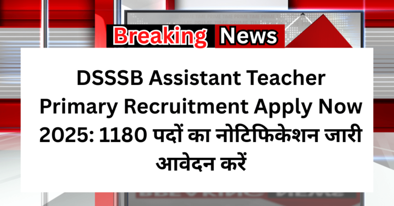 DSSSB Assistant Teacher Primary Recruitment Apply Now 2025: 1180 पदों का नोटिफिकेशन जारी आवेदन करें